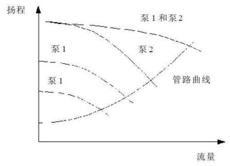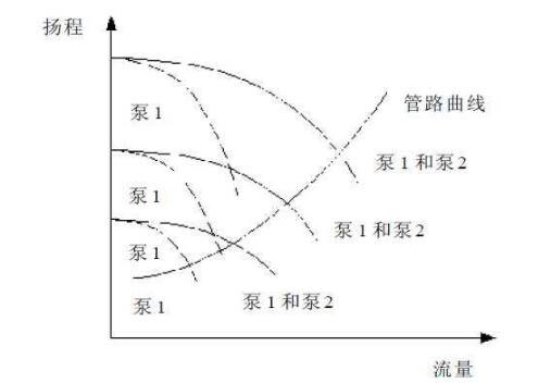 (2)應使單臺水泵的性能曲線與管路性能曲線有交點,而且交點不要離水泵性能曲線末端太近,這樣就不會發(fā)生氣蝕現(xiàn)象。